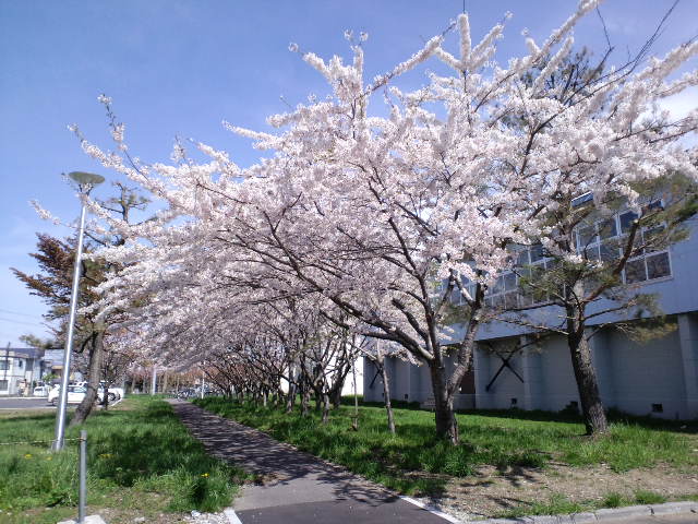 近くの桜が満開です。
