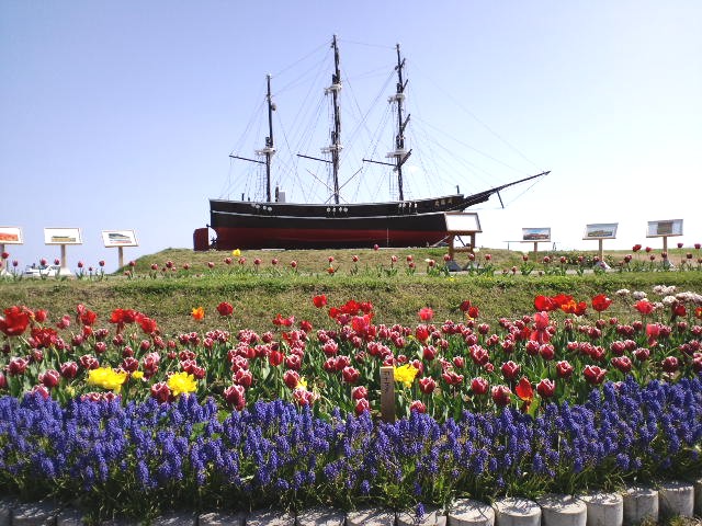咸臨丸がオランダで建造されたのが縁で チューリップが植えられるようになったそうです。